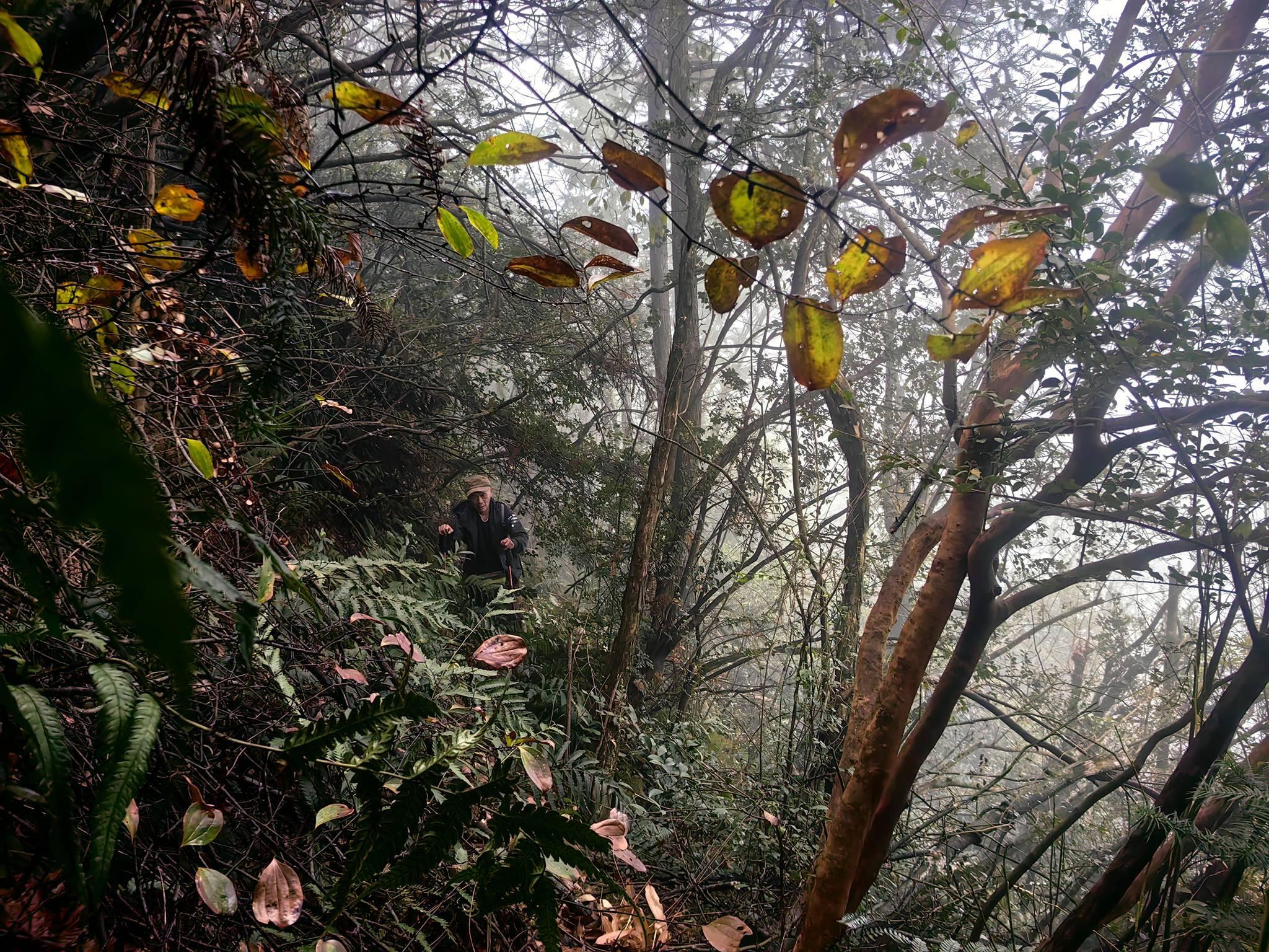 大峰尖起初4公里有500米以上的爬升,现在修了防火道,没有探路的成分,只是一味的哈走子走,由于自己被押解着,所以,只能按照大好人的速度进行。