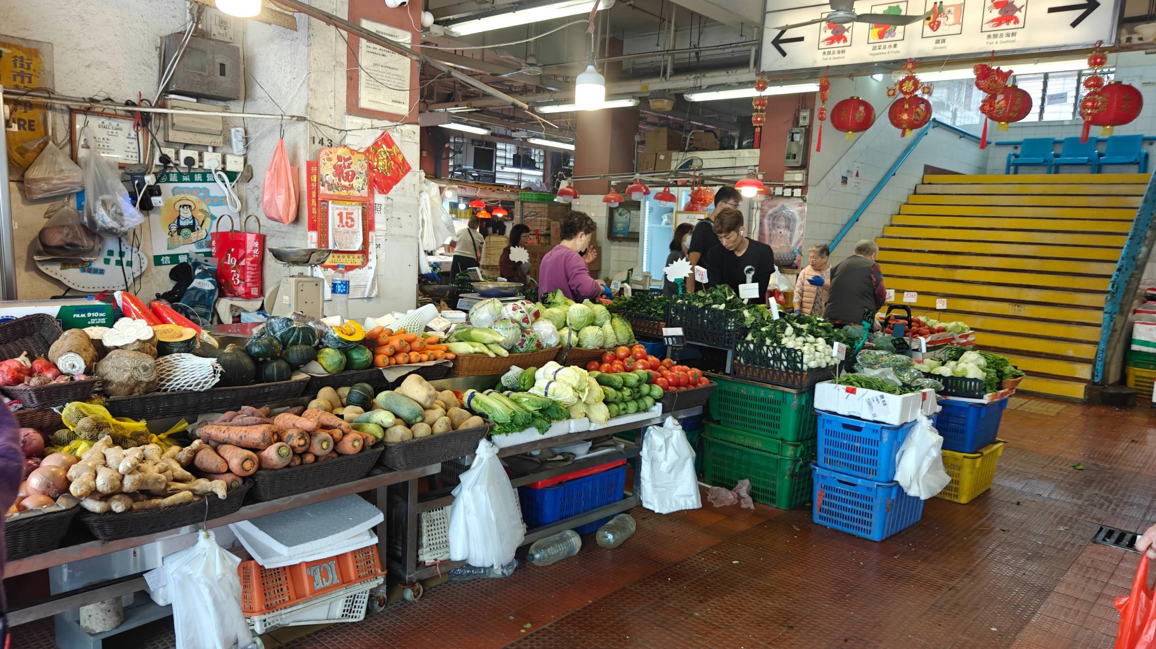 庙街周围还是大有收获的。有本地人的菜市场,我特意进去看了菜价,西红柿比较便宜10元一斤,荷兰豆要25一斤了。因为当天是除夕,还有花市。