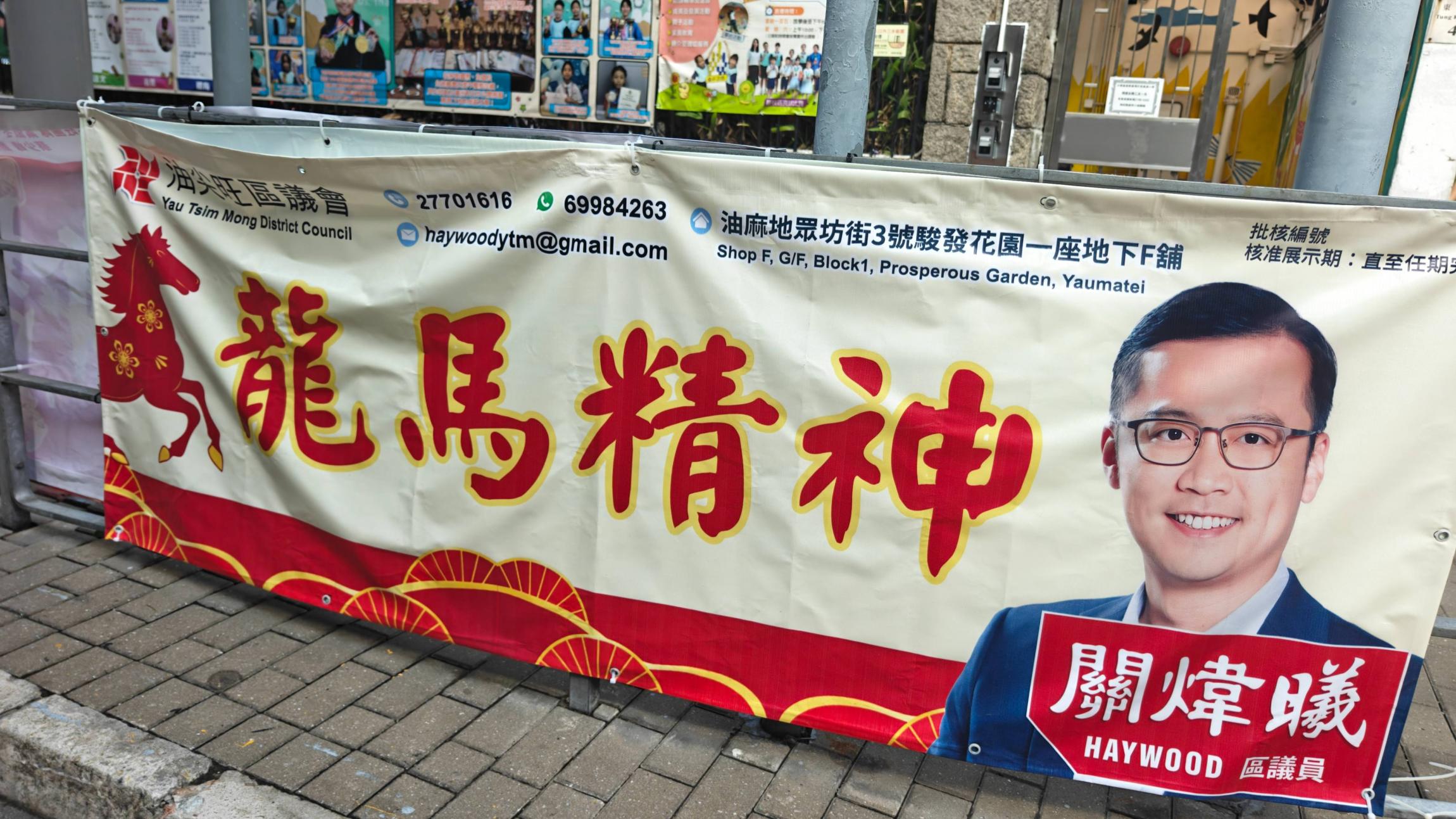 在油麻地我还发现了这个。区议员照片是这座城市基层治理的一个生动缩影。它代表的不是商业广告,而是区议员作为“社区服务员”的身份公示,以及他们与市民之间的一份郑重承诺。