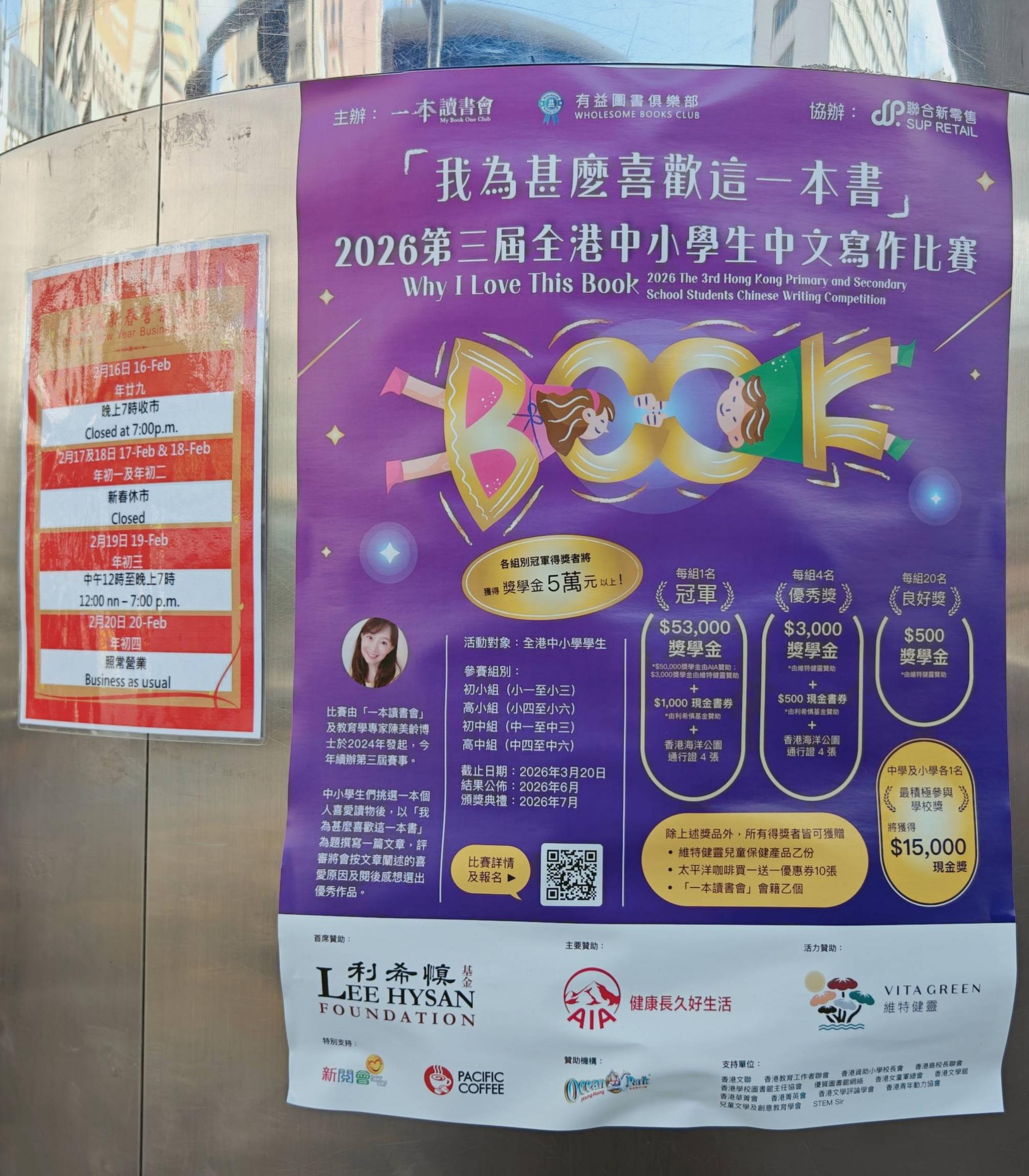 这是香港中华书局旁边的一个写作比赛海报。看到传统的书店还是很开心的,虽然关门了。