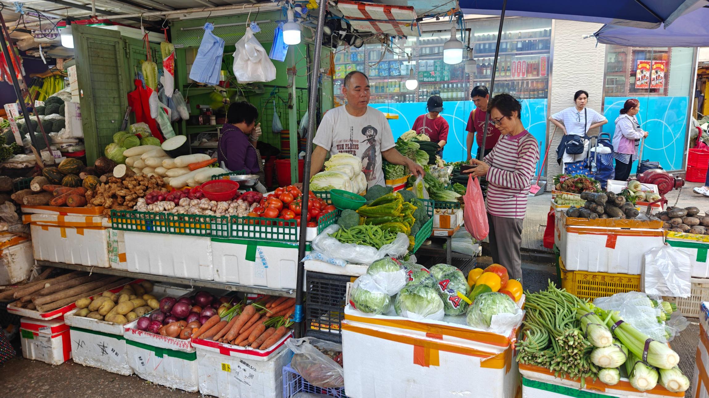 在果篮店,我看到一个港女买菜讨价还价,真的和港剧一样一样的,直来直往,很利落。