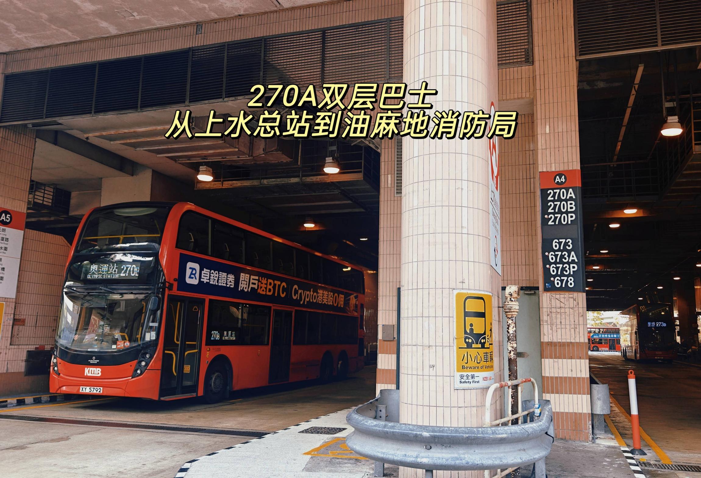 9点26分在公交车上水总站搭乘九巴270A到达油麻地消防局。人民币14.93元。