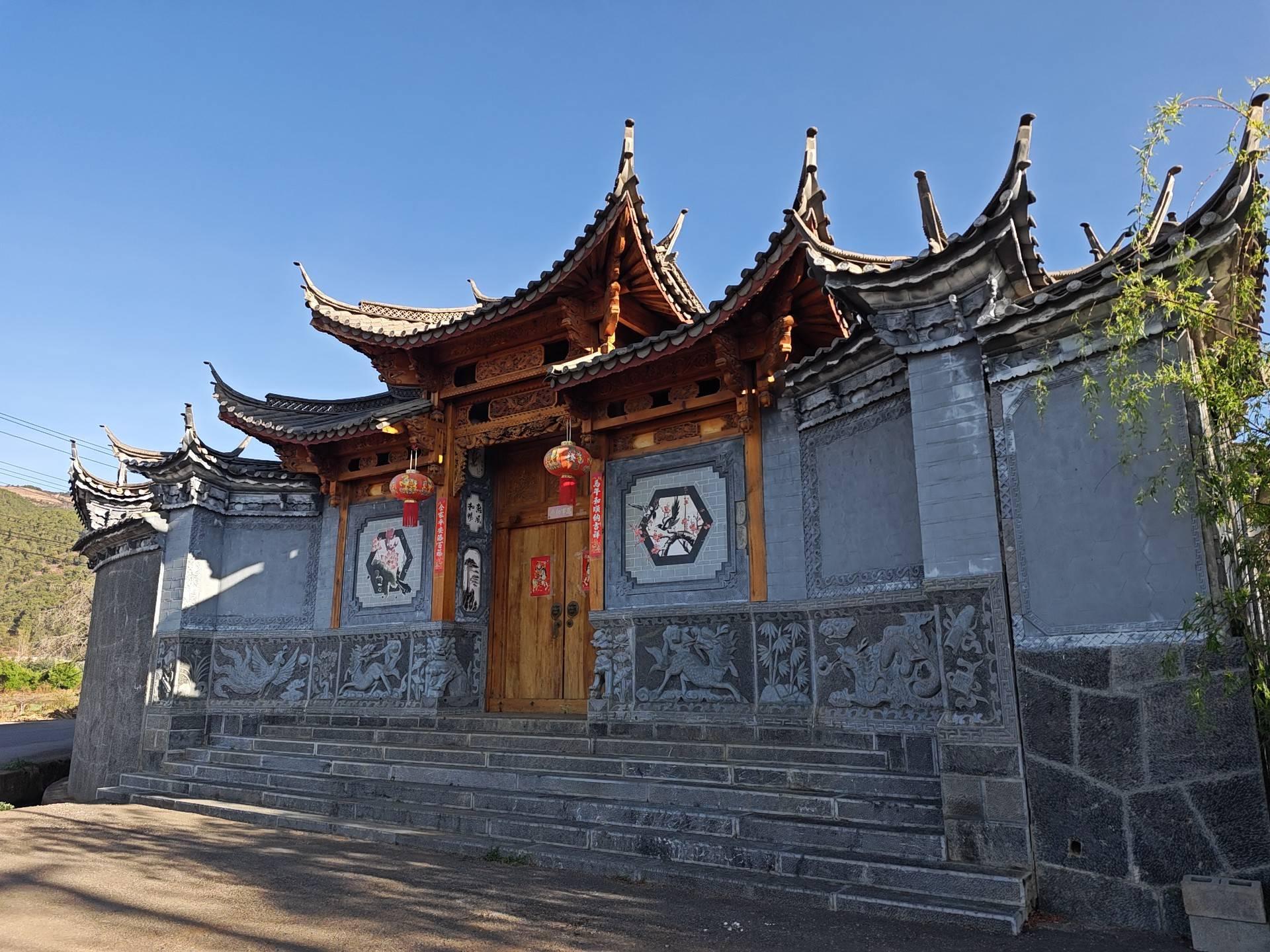 波多罗村作为彝族村的属性,在房子的结构上看不出来,主要是从白墙上面的图画和文字体现的。房子高低错落分散在山坡上,后面的行程中遇到的村落都是这样的形态。