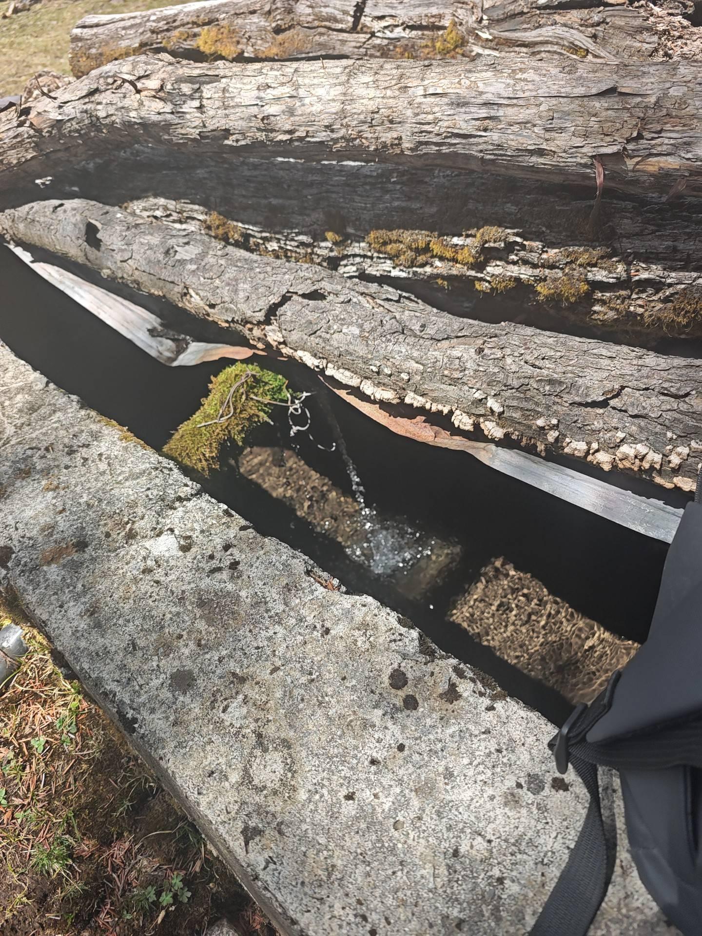 波多罗村在垭口北侧,水泥路以较大的坡度曲里拐弯急降,弯道之间是坡度更大的小路,都是村民踩出来的。我发现了一个水源,山泉从水管中冒出,落到蓄水池里,水池上方盖着木头,防止尘土落入。我从旁边的缝隙把空瓶子放进去,接了满满一瓶,一点儿杂质都没有。我想改天可以开车带着帐篷在这儿露营。当然,我要先买车。