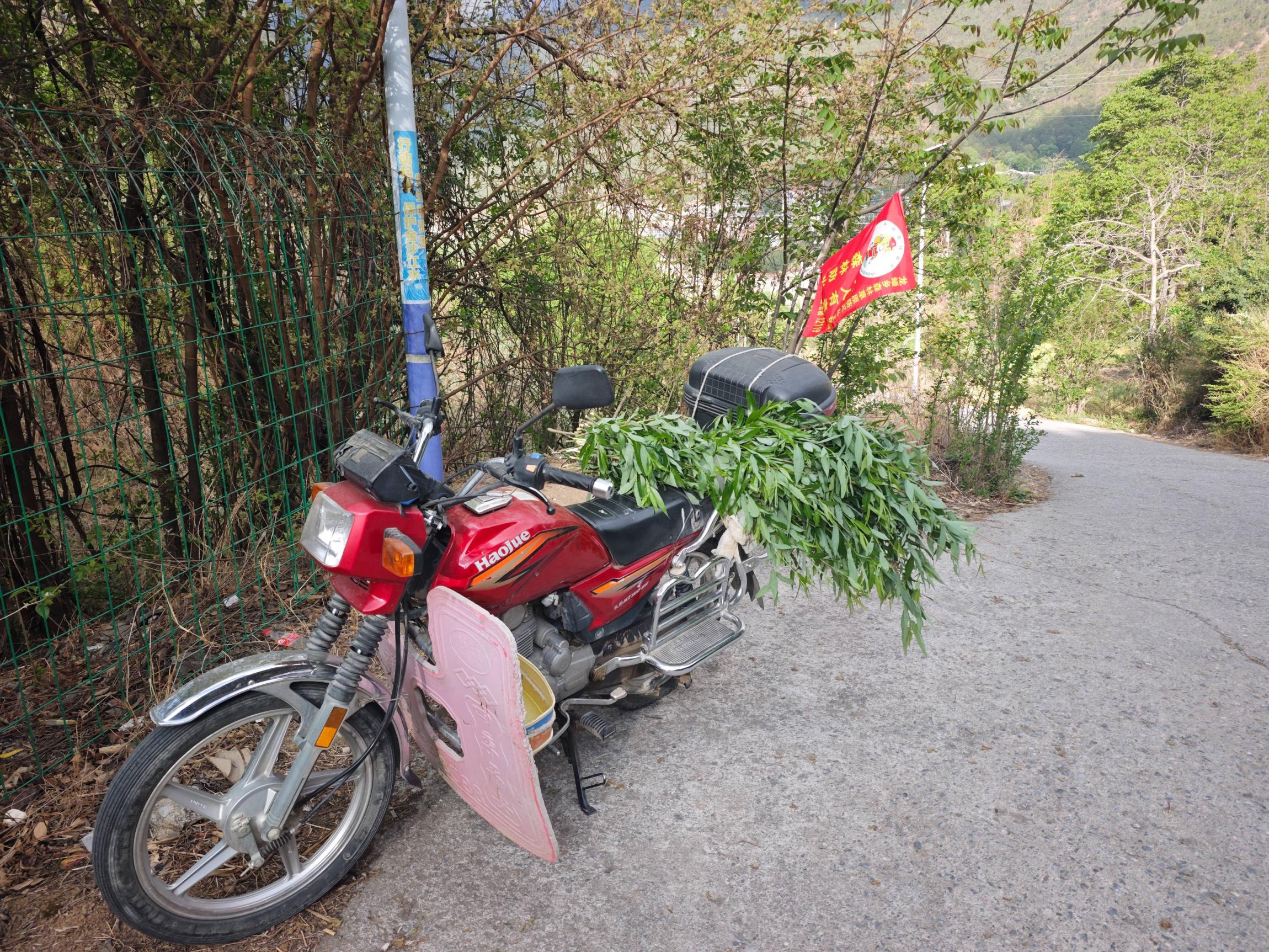 村头一个大牌子上写着”南尧”,告诉我这是通往南尧的”村巴”的发车点,我意识到这个村子属于垭口另一侧的拉市镇,与那里联系更密切,与下方的居民有可能来往较少。但不至于老死不相往来吧。我坚信同一条山谷内村与村之间必有路相连,不管它们是否属于同一行政单位,这个信念驱使我直接顺着一条小溪下行,连问路都省略了。