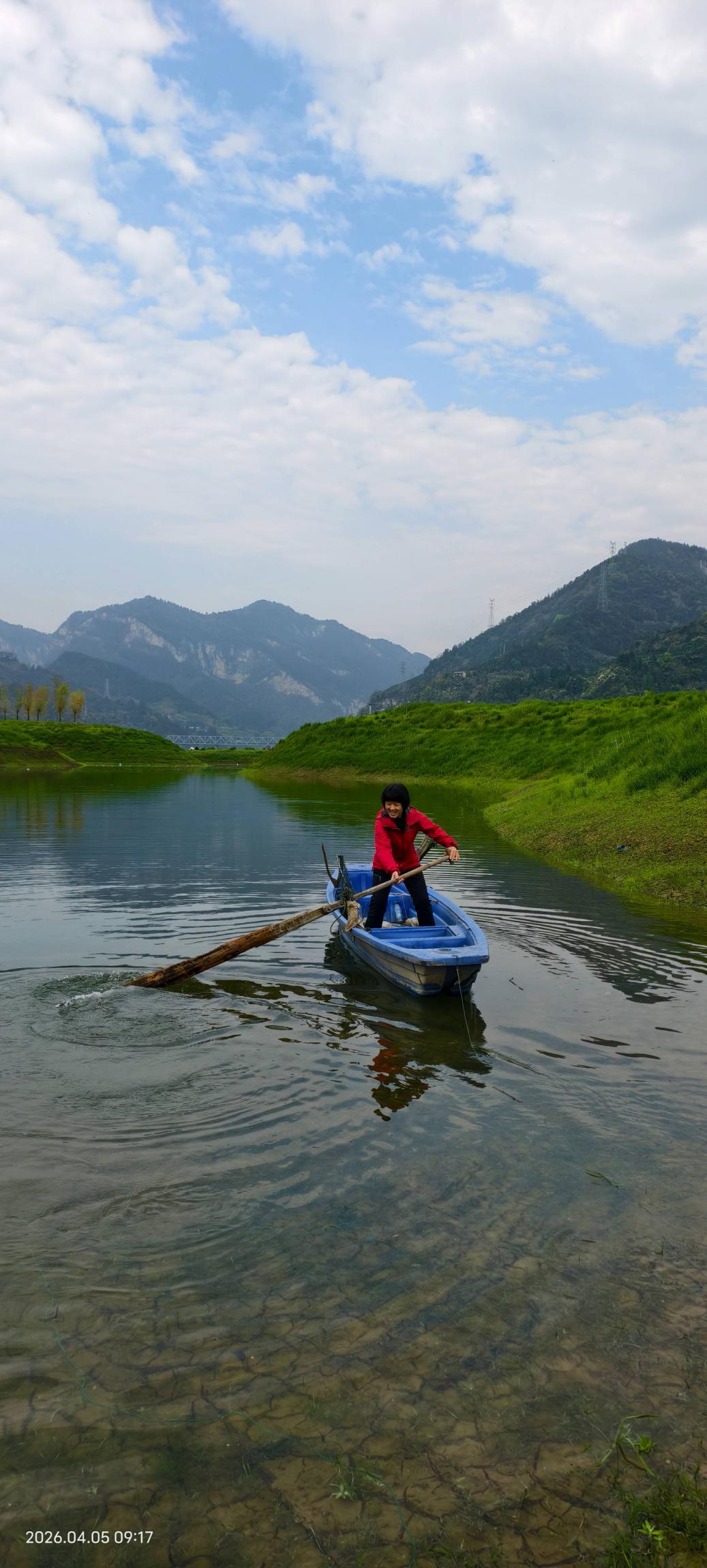 仿佛到了新疆的喀纳斯大草原,草木葱茏,生机盎然,草原舒展在眼前,湖水清澈温柔,安静又治愈,大家心怀雀跃,在草地上奔跑,划船,Sunny划得有模有样,湖边