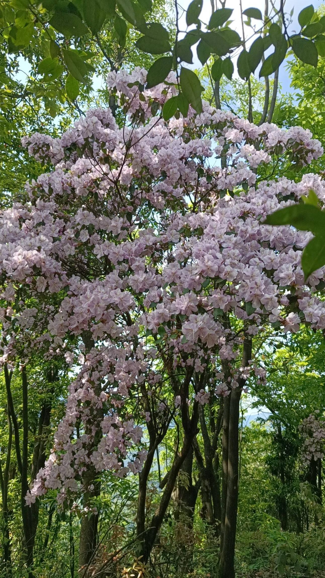 没有任何商业开发,大家纷纷拍照打卡,峡谷出口一户农家中餐,品浏阳茴香茶。中餐后,另外峡谷上山,山势比较陡峭,上到山顶休息好几次。山顶云阳杜鹃花开四溢。