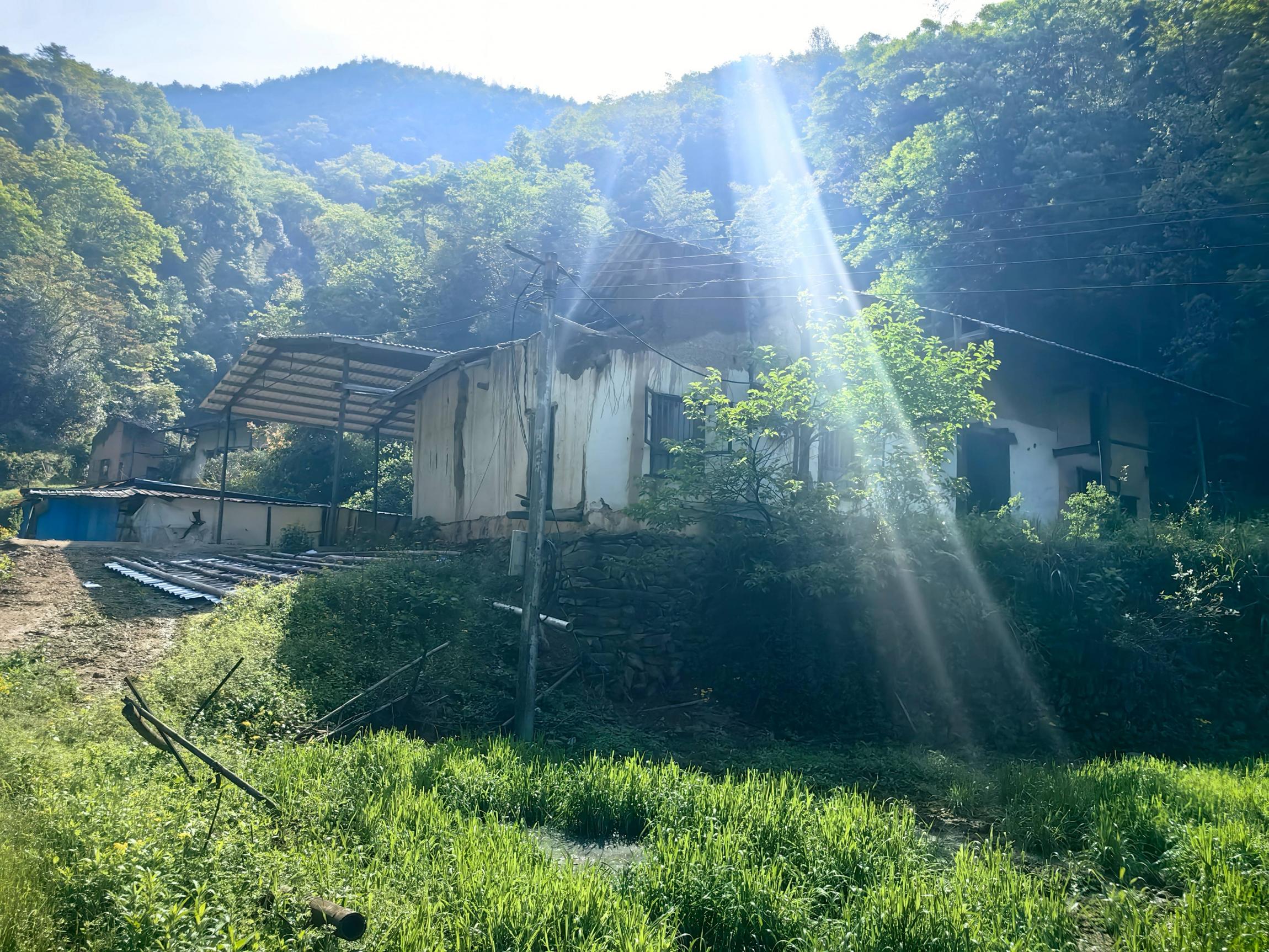 水泥路尽头停车后,左边进山,原来养殖基地关闭了。