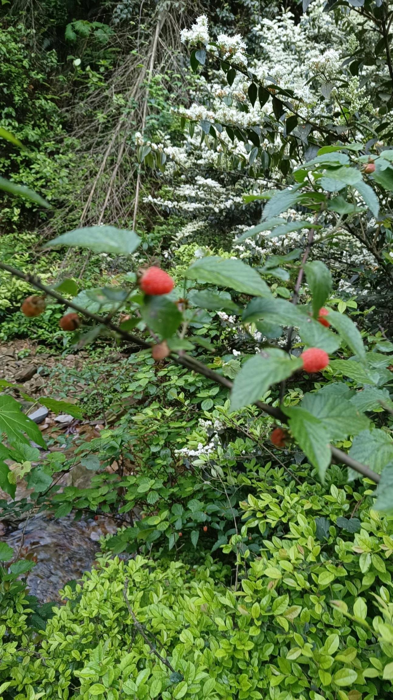 下山之路到另一机耕道,不想走重复路,向上走,结果越走越难走,果断放弃,折回去后,又发现新的小路,直接下到下面机耕道,下到今天第四个峡谷,原来养殖基地也关闭了,但边上新修一栋楼,主人正在整理和种菜,机耕道一路到终点。阿混上升千米差30米,又折回去跑过来回,终于完成千米爬升任务,每个人都一大包野菜野果。