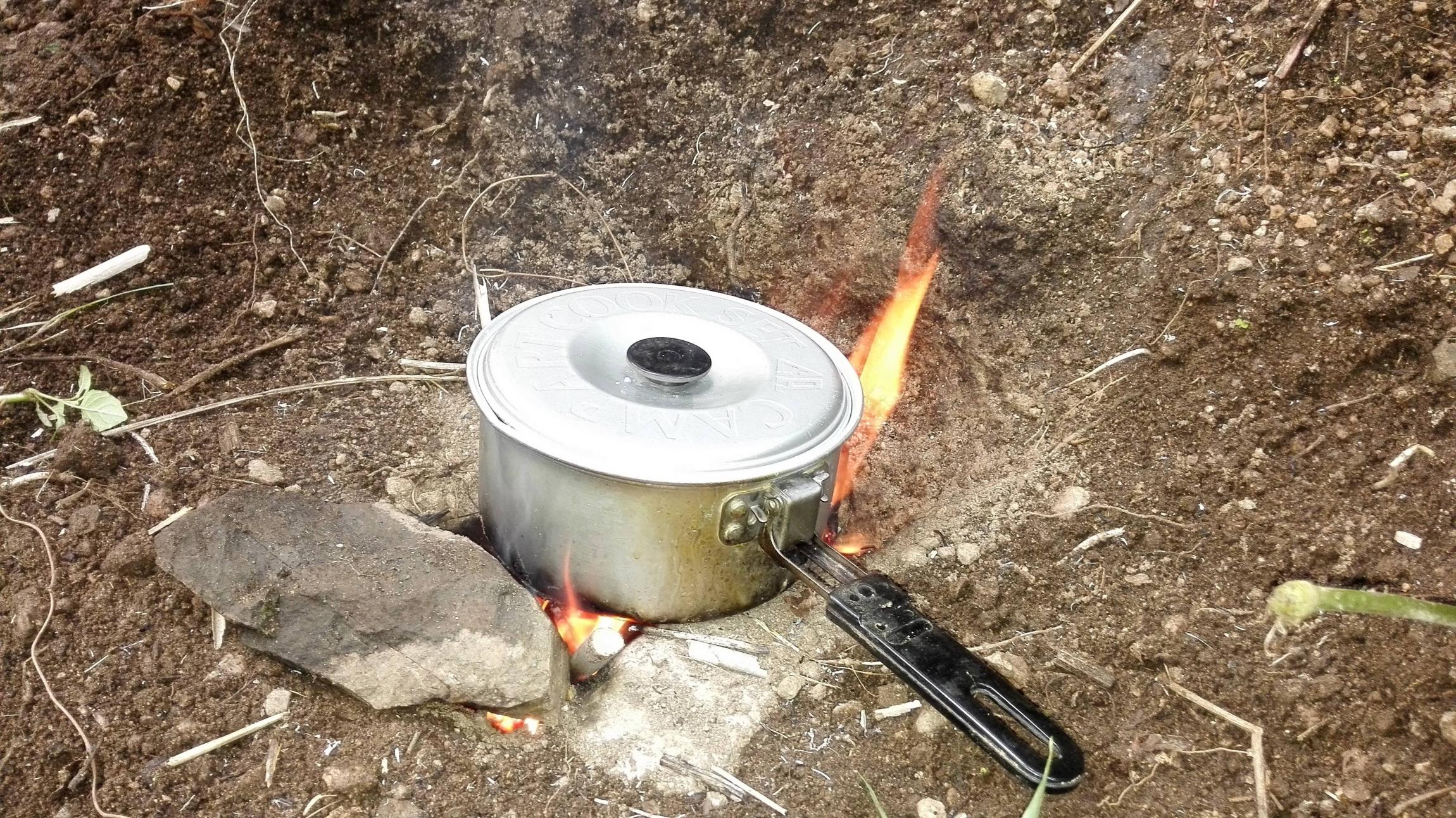 16:00 支灶、捡柴,准备晚饭。