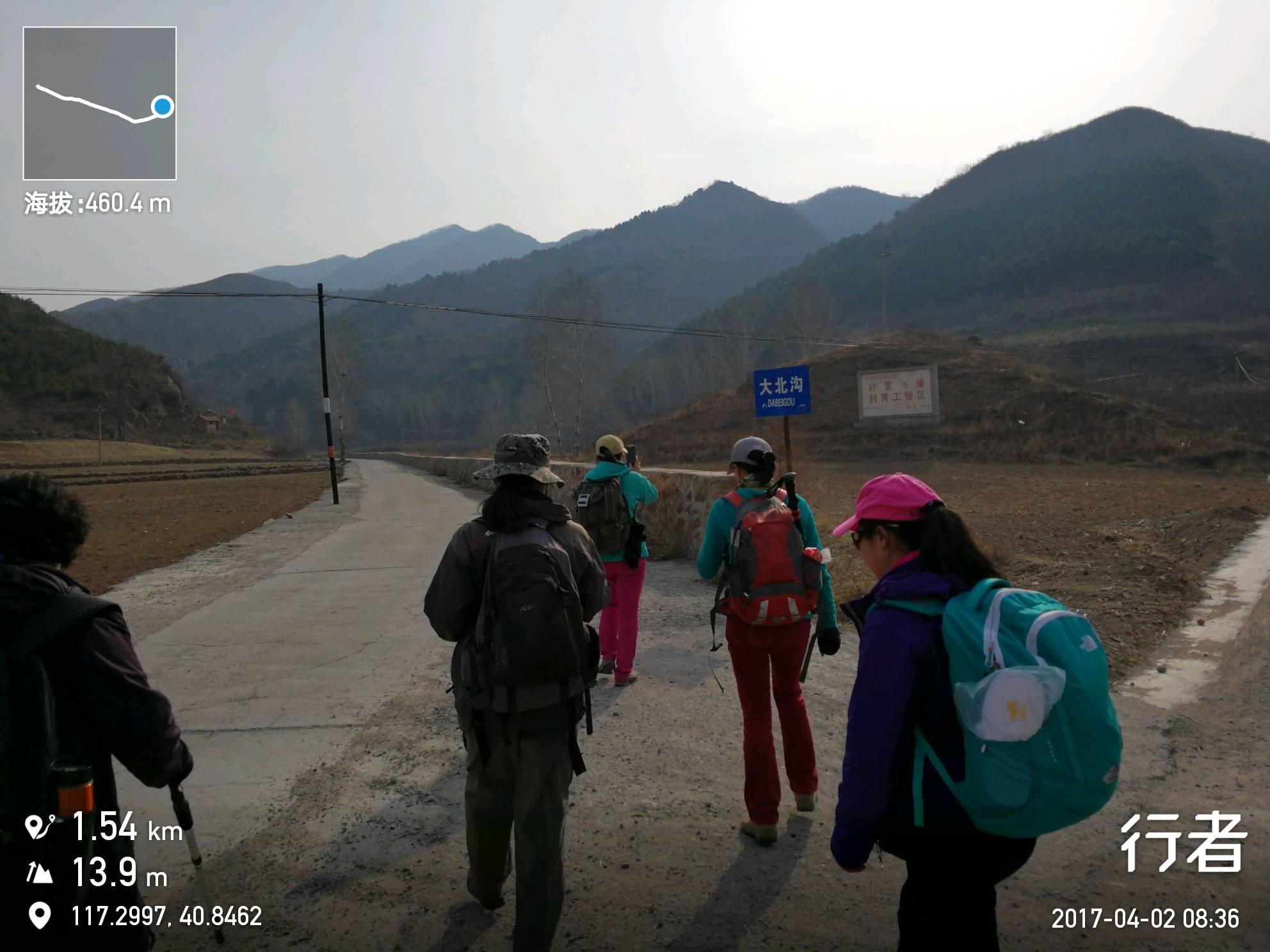 出走地区位于河北省滦平县东南部至北京市密云区东北部。分为两天完成,第一天起点位于滦平县火斗山乡曹家营村,终点为巴克什营镇,大部分路段在山谷中,沿乡村水泥路行进,期间翻越两道山梁,当日里程26km,上升600米。第二天由巴克什营出发,沿山脊行进,至蟠龙岭长城右转,沿长城走到古北口镇关门外村,再沿101国道走到古北口镇,结束徒步,当日里程8km,上升252米。