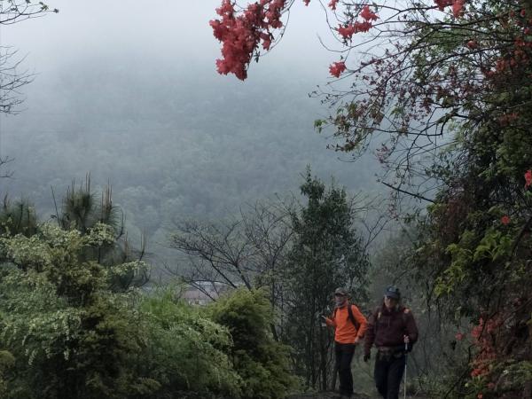 如果天气好,我们就翻越九把龙到观前村,如果下雨,就从洞阳水库岸边去。