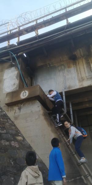 我们探访两个古闸遗址后,继续前行,在一段废弃的环形铁路轨道上玩耍。