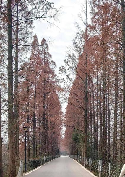 骑车去看五美水杉大道,这是一条5公里的水杉大道,小河两边都有,目前应该树叶红了,以前开题徒步过,现在骑车去看看