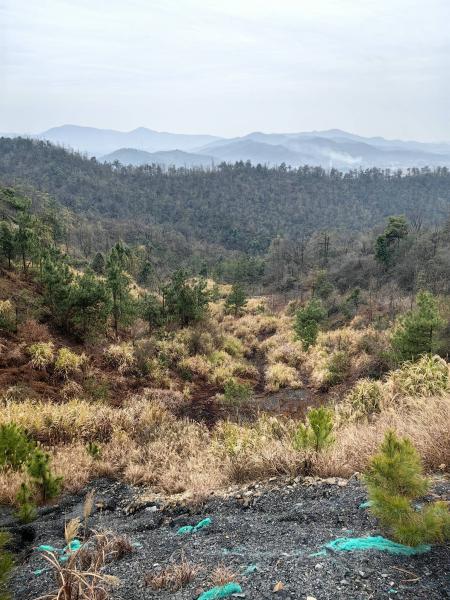 9:00,到达雨敞坪镇,向东开始徒步,鸡胸山可能被开挖过。