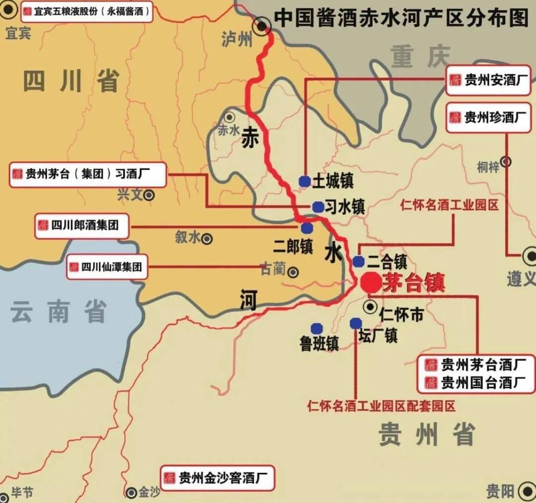 赤水河发源于云南镇雄县赤水源镇,全长约436公里,流经云南、贵州、四川三省。主要流经云南镇雄、威信;贵州七星关、金沙、仁怀(茅台镇)、习水、赤水;四川叙永、古蔺,于合江县汇入长江。