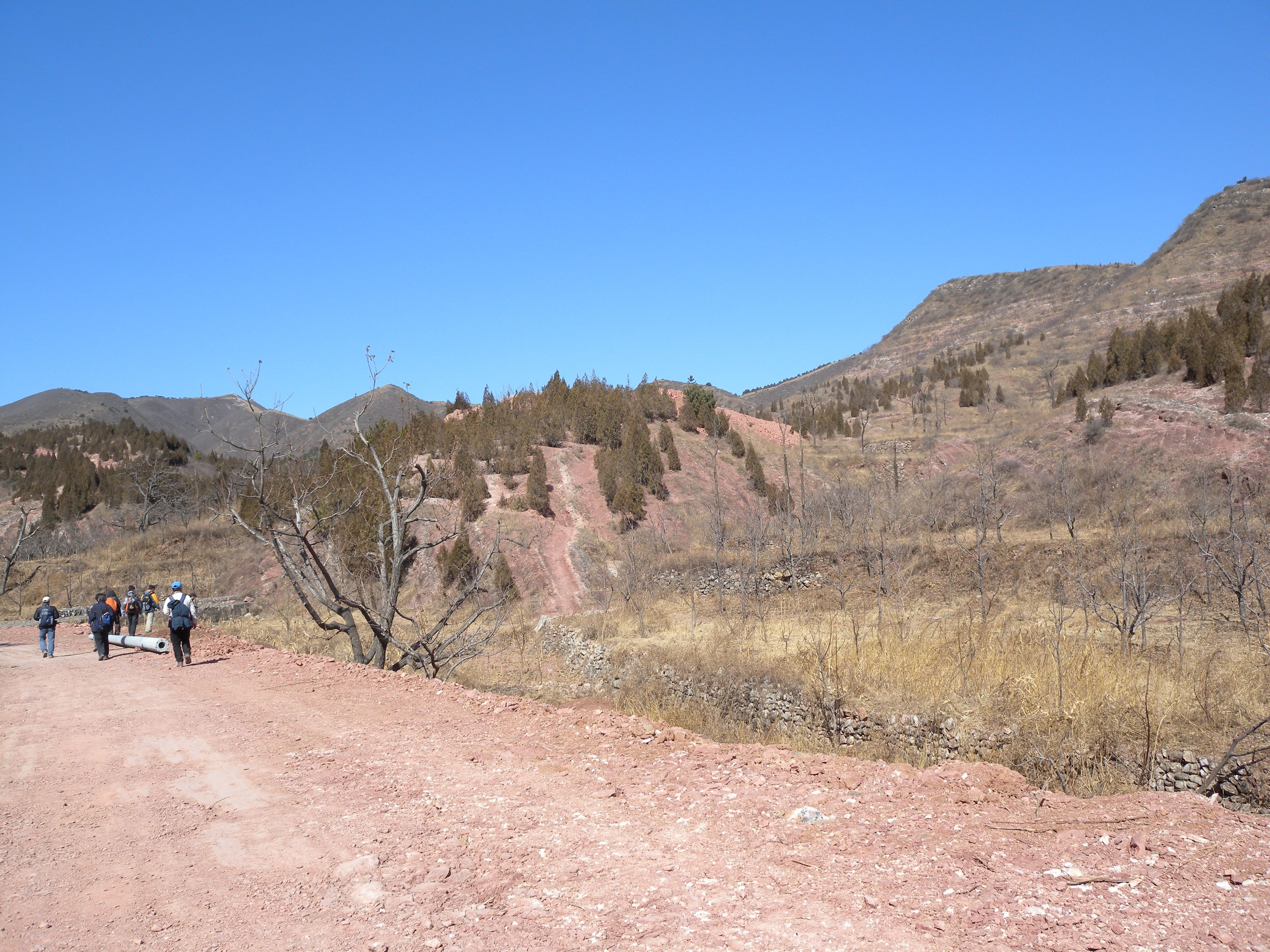 此路线中营之前和红石门之后均为公路,地形较平缓易行,中营之后,红石门之前,地形较复杂,有两次升降,特别是中营至点1这一段,岔路较多,容易迷路,而点2到点3一段,估计灌木较多。