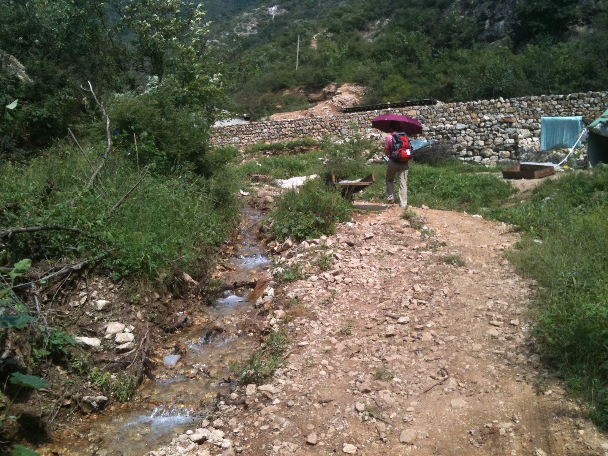 出走区域位于密云县东部北庄乡境内,靠近河北省兴隆县边界。由北庄出发,向东沿清水河支流河谷,取道351乡道,经点兵台等村庄至杨家堡村,向北沿驮道及牧道上升,翻过山脊,沿沟下降,出沟至密古公路边的松树峪村。