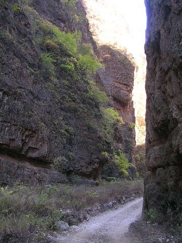 沟宽10-20米,高十几米,中间有两到车辙。竟有如此好的路,大出意料之外。沟壁多成仰角,我们开玩笑的命名它为“五壮士沟”,因为从哪里掉下来都可以成为烈士。
