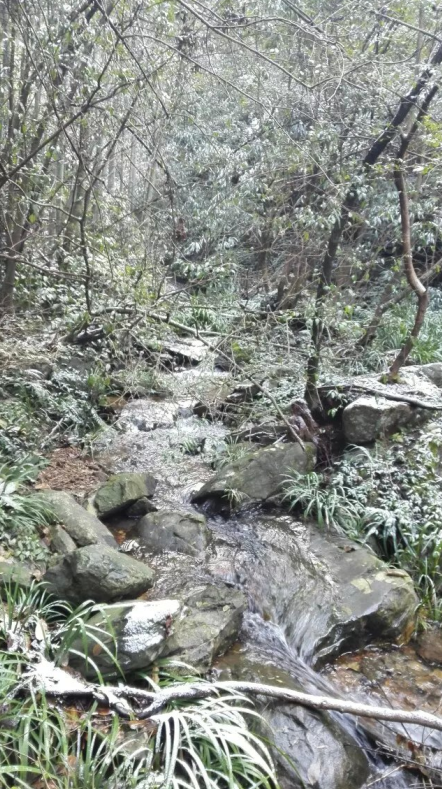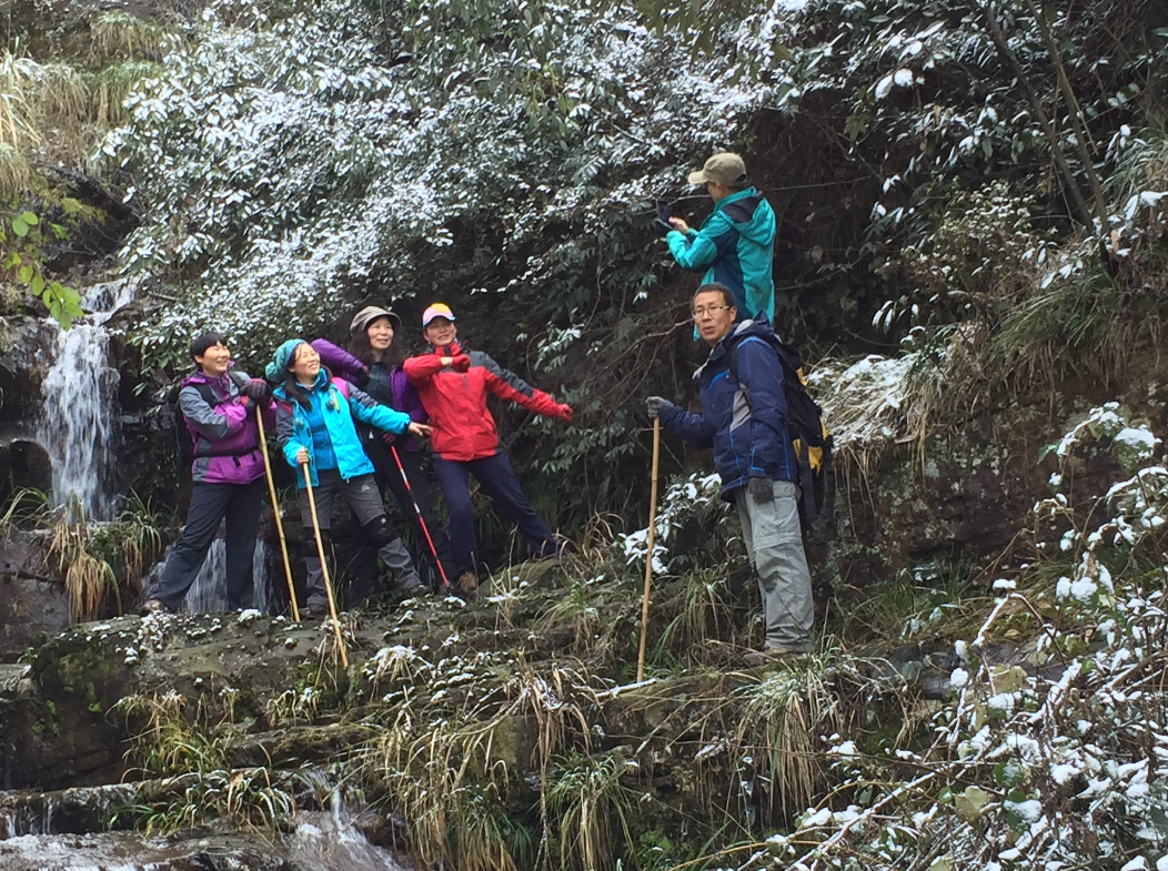 出走的路并不复杂,白雪点缀的大山村显得格外秀丽,雪后的山路还的确有点滑,步履艰难,队友们相互照应,互相搀扶,渔夫在前面探路,提醒大家注意结冰的地方路滑小心行走,队伍中的男队友充当起了保护神,美女洋子鞋穿得不好,又有点怕高,鲁博士就一直陪在后面,一刻也没有放松,还有青山也一直照顾我这个手受伤还没有完全康复的我,才得以安全欣赏一路美景,过小桥,穿溪流,观冰凌、雾松,攀山岭,最值得一提的是整个山谷都长满了兰花草,三步五步就有一处瀑布,大家纷纷拿出相机拍摄,生怕错过眼前的美景,按开题人所说的今天的出走不求强度,不搞穿越,开心观景,安全第一的原则,带领我们走入山间,跋山涉水,踏雪看瀑布,大家都感觉不虚此行,我们超好的人品,艳阳下雪山中,令人流连忘返。。。。。。