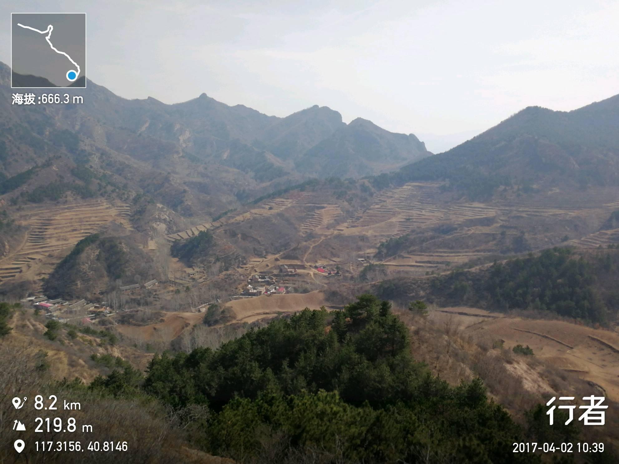 我们没有严格按照我画的轨迹走,那条在和缓坡地上一览无余的路诱惑了我,但它并不通往我们下一个目标——北台子。经一位大爷指点,我们向右爬升,慢慢向正确的路线回归。我很快发现根据谷歌卫星图所画的轨迹并不精确,对地形的判读在这一段有误差。