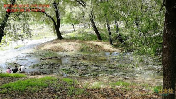 路庄桥附近,不少人在玩水捞鱼,水草全都倒伏了。