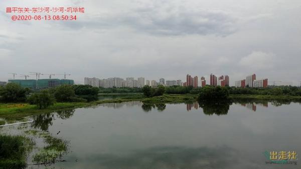 南环路与怀昌路之间的东沙河,是昌平新城滨河森林公园的核心区,也称白浮泉湿地公园,之前枯水时左右岸有小道连接,现在靠左岸的那段已经没入水下,之前丰水时右岸段也是潜入水中的。