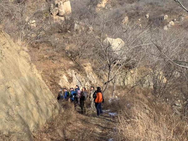 从大南山养生谷出来,穿过110公路,我们再次进入另一座山脉,一段公路爬升后,进入林中小路,然后就一直往密林深处,阳光稀疏,林中阴森,看不到尽头,落叶要崩溃了,痛苦的坚持着。翻过第二道山梁后,我们沿着干涸的河床下山,一路在岩石缝里行走,这一段路,路边很多山楂树。果大味美,北京社友们都忙着捡拾,我是第一次看到山楂树,联想起了电影巜山楂树之恋》,对电影里的那棵树怎么一点印象也没有。