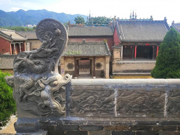 清虚观整体维护没开放,山门外远远的照了相,两尊高大彩塑;东青龙、西白虎。山门在道家眼中象征三界,跨入山门,意味着跳出三界。