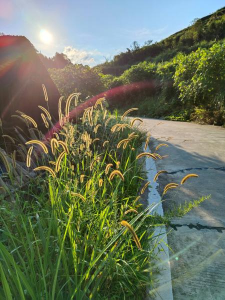 自在鱼走的是国际徒步路线,和阿混去年的路线稍有不同,刚出高铁站走了一公里水泥路,自在鱼就决定折回走溆水河边(第一次折返),全员往回走,从一条小道上走上了田埂,边上就是快成熟的稻穗,风景极好,可以看到河与梯田,自在鱼觉得离溆水还是远了,自行探路未能下到河边,又往回走一段找下河的路(第二次折返),好不容易下到梯田最底下的一条路,全是高草,再往深处就是刺蓬了,只能回头走上梯田梗(第三次折返)。