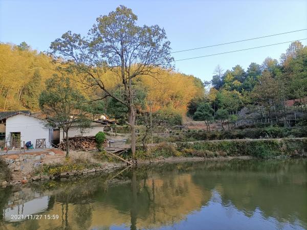 小憩碧塘欹水杉