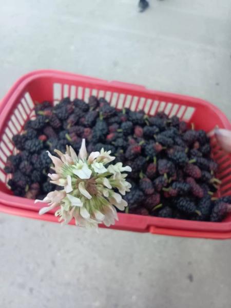 步行俩公里左右,路边零散零散有了桑树,果儿有点小,黑色和紫色的还不多。蚊子再小也是肉,摘了再说,尝了下,酸酸甜甜的。他们说,前面有更大更好的,建议我吃完去那里摘大果。那,就先吃吧,开吃开吃......
