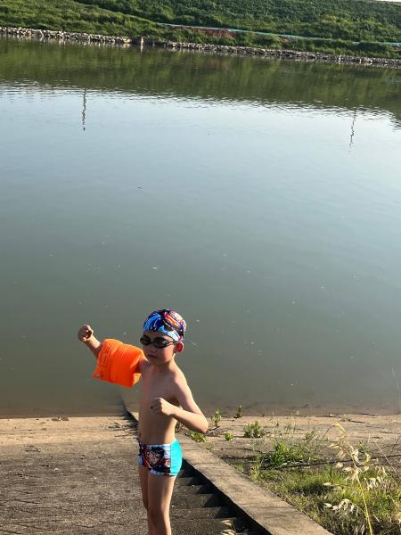终于到了游泳的地方,不知道是浏阳河的第几道弯。。 水比湘江凉比湘江清澈。河边好多螺丝。还能看到小鱼,湘江是绝对没有的,至少我住的那段没有。
