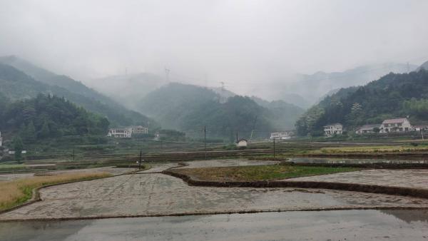 我们调整了线路,比计划线路多上了一个山,多走了8公里,群山在烟雨中尤其如水墨画般的山水。