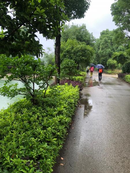 初夏适逢雨季,每到周末必定下雨。清晨起来果然还在下雨,就有走友问今天的徒步活动会不会取消,何老师说要坚持出走社“风雨无阻”的优良传统,必须继续啊!