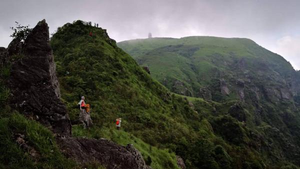 是日,天公作美,风起云涌,云卷云舒;云蒸霞蔚,气象万千。东览八面脉屏,西眺东江波鳞。万丈危崖股颤颤,奇峰异石处处景;漫山绿茵谁铺就?疑是仙人落凡尘。