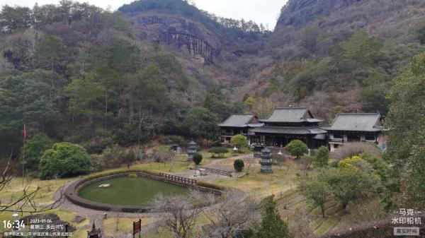 查百度说是这里是世外桃源之意,不关洞的事。院子里面有高大宏伟的大殿,但奇怪这个窄窄的小路还有狭窄的门楼,如何运进来的大体积建材,这是个悬疑。在茶园茶馆广场没有见一个人,几个大鸟在散步。我寂静中一个人继续走到岩茶村车站。空空的景区由我一个人独享。今天在早晨上车前把我住所2百米处的余庆桥和学堂古迹先查看了一番。