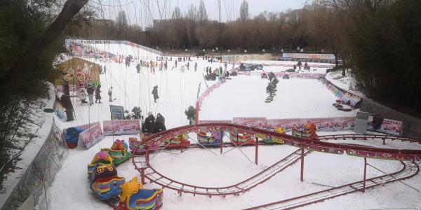 紫竹院湖面自然分割的几个部分,每个部分都被利用来做成了冬季游乐场,其中两个冰场,一个雪场。横穿过整个公园,到达东门,这里的②号宝没有找到。