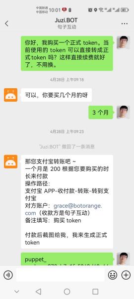 出走社机器人运行需要购买token,目前使用的token是由句子互动公司提供的,月费200元。我已垫付4月28日起3个月的费用,申请报销。