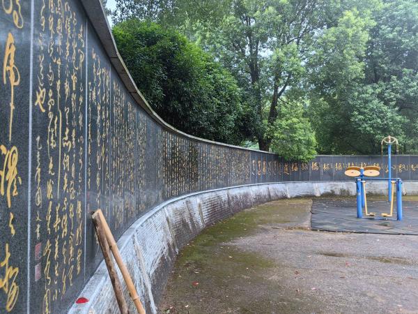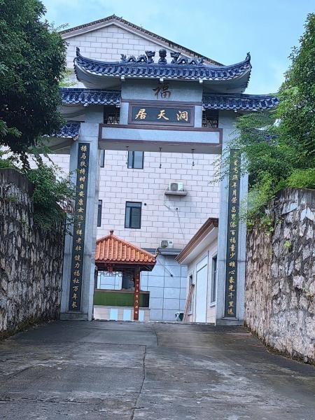 洞冲虞水库在道路的左侧,相隔好多稻田,但既然来了,就专程去看看,没想到水质一般,却在大坝边上看到了一个莫名其妙的山庄一样的建筑,高深大门上书“洞天居”,里面没有鸡狗之类的动物,更像一处新修的公园,干净而安静,各种亭子,照壁上各种书法石刻,无人值守,也许是个道教场所?