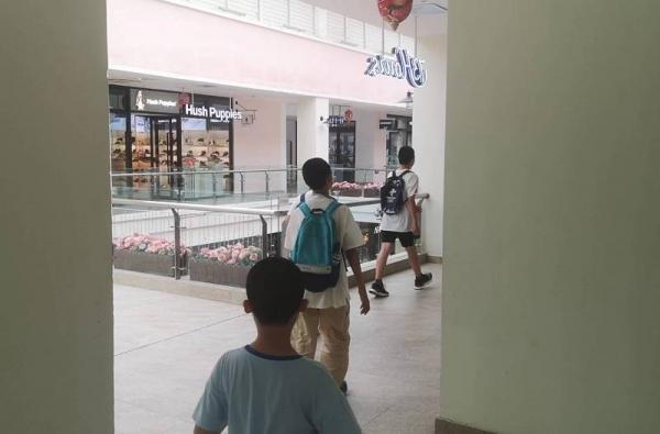 这个巨大的商场人流不算太多,我们吃过饭,孩子自然是聚在一起打牌玩耍,大人也都坐在一旁休息,没人购物闲逛,也许走累了吧。