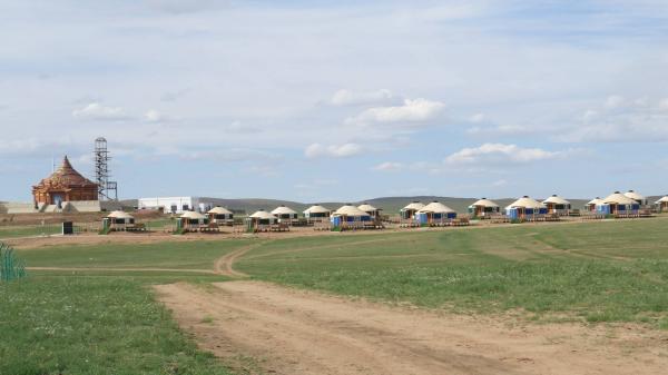 格根塔拉景区大门没什么特别的建筑,景区内有一处圆形水塘,周长约1公里,除了蒙古包这种建筑之外,就是草原了。