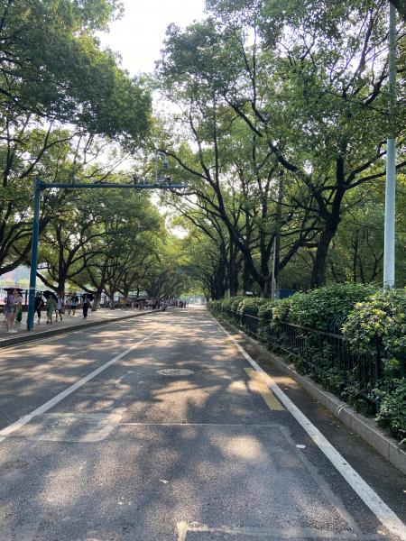 牌楼路:两旁古木参天,枝叶交荫,绿意盎然,这条路孕育了多少莘莘学子。这条路也承载了我和社友豆儿十二年前的记忆:那时的小豆儿每个礼拜六日会骑着自行车沿着这条路去爱晚亭溜达,桂花糕是她的最爱,那时候的娘俩也好幸福呀。
