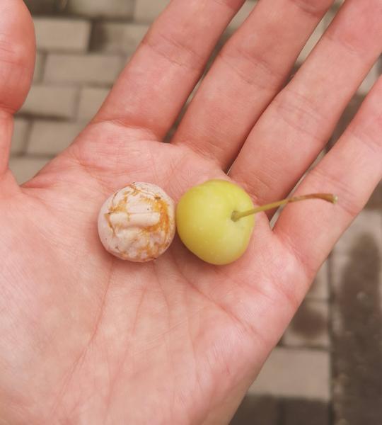 这一次是果实开始吸引我们。最多的是桃,路边到处是桃树,很多落到地上开始发酵了,还在树上的也大多成熟了,轻轻一碰就落下来。头一次吃这些绿化带结出的桃子,意外的桃香,觉得这是真的桃的味道。
