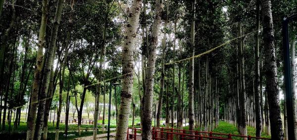 小场沟是流进温榆河的一条水沟,地处朝阳通州界上,缺乏治理,水质浑浊。水面不算小,宽度有大概三十米,水边小柏油路没有车,是附近居民的遛弯路。林荫道旁杨柳很多挂了牌,写着“杨树(雌株)”“柳树(雌株)”,这是治理飞絮的统计工作成果,雌性杨柳会产生杨柳絮,未来绿化部门将不再种植。