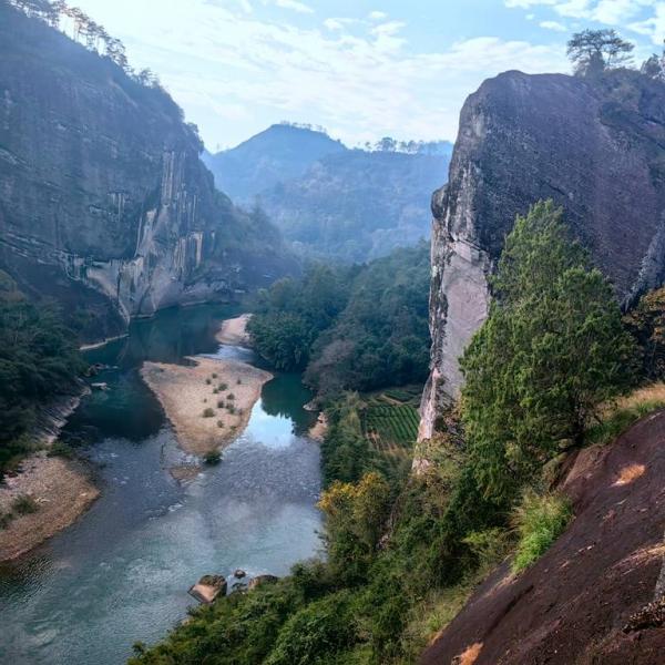 这是一个很大的山谷,山谷两边山峦重重,富屯溪自北而来,在龙斗村这里转了一个半圆,向南流向邵武。