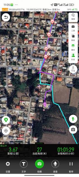 4.为了乘车方便,终点修正到南洛村,然后仍然失算,因路面结冰,公交车起点收缩到北洛,所以又走了一段,总里程约20公里。