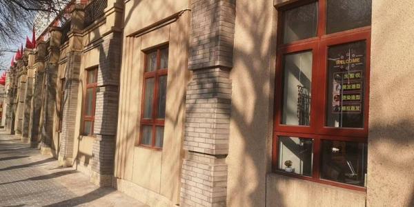 继续向东,这一片住宅楼的一层是很适合当做商铺的门脸房,但是整排房只有窗没有门,也就没有商铺。仅有的一间发廊,在楼拐角处,门不临街,两扇窗上有简单的招贴,有一扇窗上的招贴是反贴的。