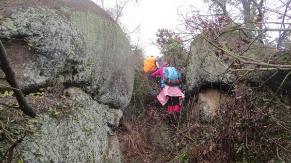 开始下雨,我们抱定决心不再钻林子了,之后的路没有悬念了,虽然以前没到过这个地方,但走水泥路,还是将我们带到了曾经走过的线路上了。