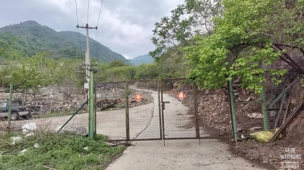 一半土路后就是水泥路了,只是沟口有两道铁门锁着,必须翻越。熬鱼国际沟正在修路,过水库我是走的沟里土路,在库北侧先穿了一个养猪场,两个大猪散养有野猪风范,见人狂跑,有个铁栅栏门没有锁,轻拉轻关即可走过。大坝处的铁门就必须翻越了 ,只是技术难度不大。兴隆口防火站还是有两处有人值守,只是出去没人搭理我。